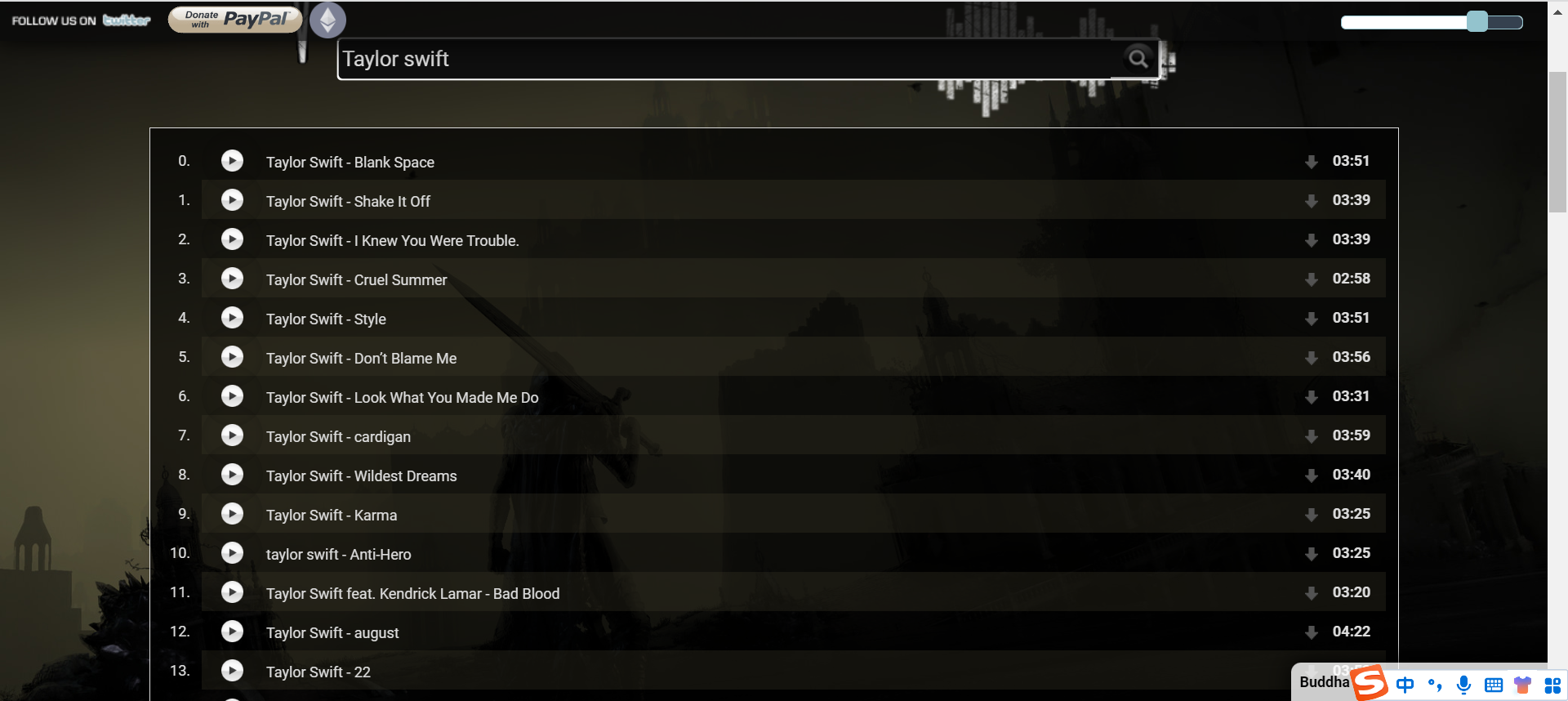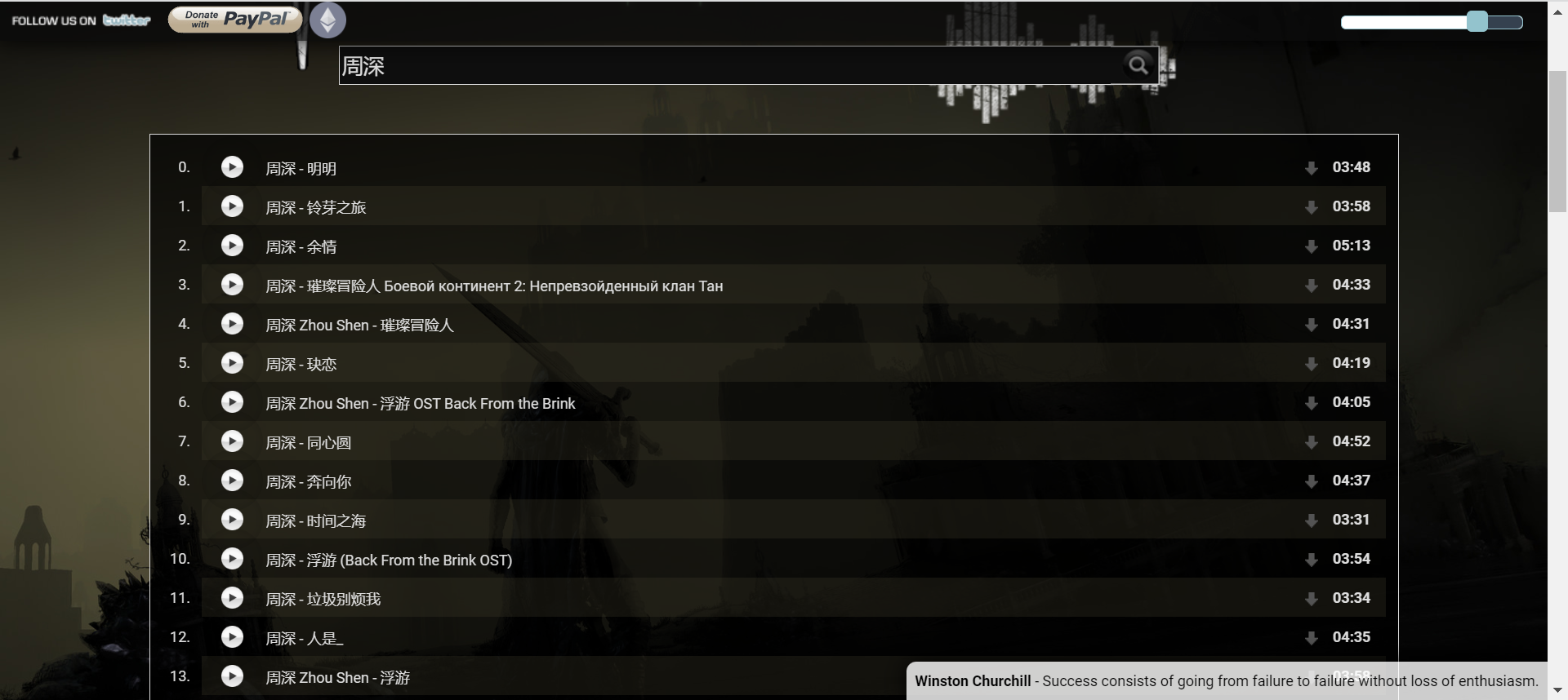 虽然网站是以外国歌曲为主,但是国内的很多歌曲资源也有的哦。我随便搜了一下,马上就出来了海量歌曲啦。任意一首歌都是能正常播放的哦,不过暂时不能列表播放。
