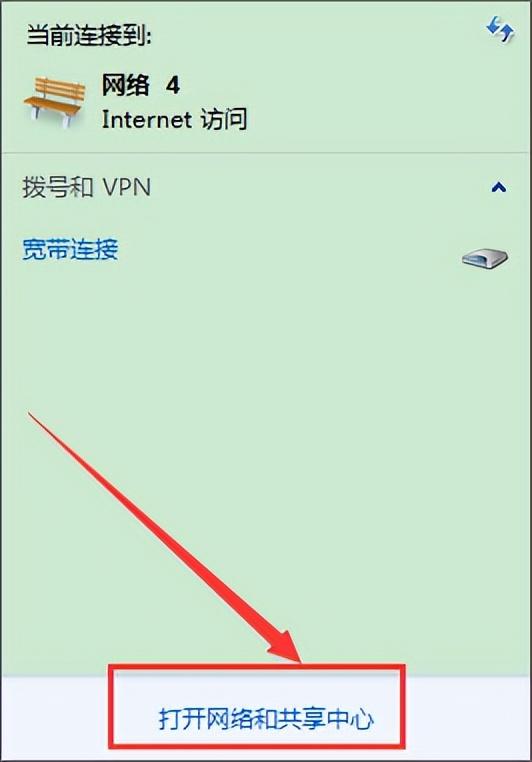 2、选择“打开网络和共享中心”;