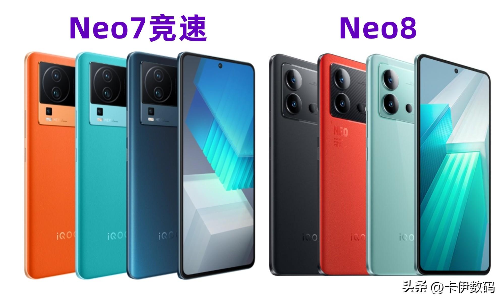 首先是IQOO Neo8和Neo7竞速版,卡伊觉得可以排除Neo8了,除了阉割cpu主频外,屏下双压感和双X轴马达都没了,1.5K的国产屏幕也不一定比Neo7竞速的三星E5的1080p好多少。