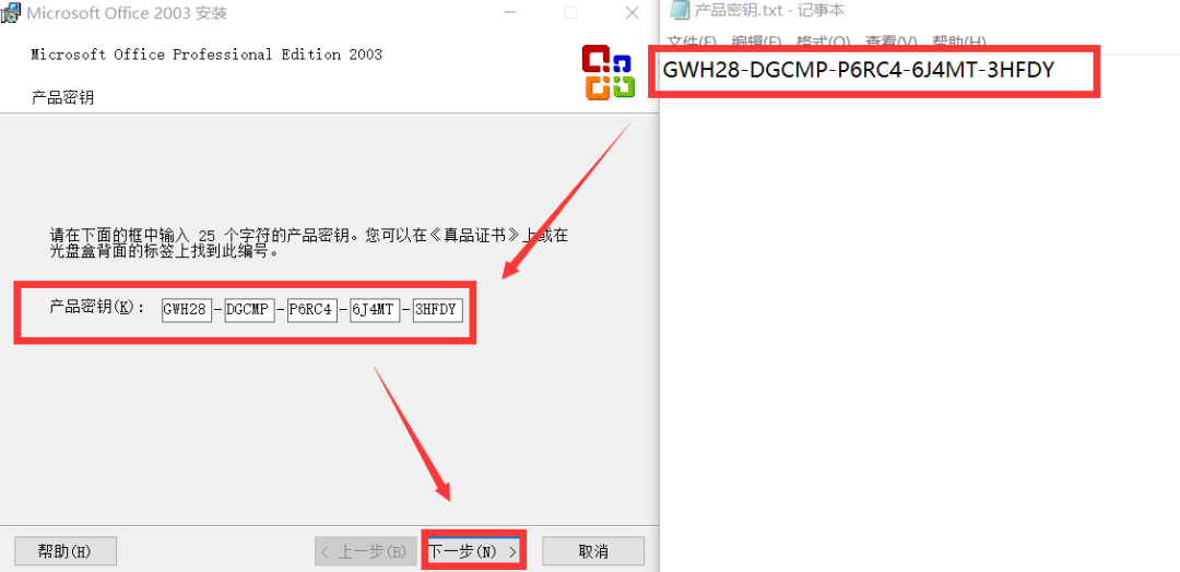 4.输入产品密钥(注意:单个复制 ,“-”不能复制),点击“下一步”