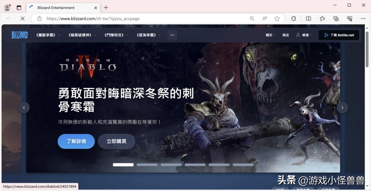 1、加速状态下,玩家们点击奇游加速页面的【战网国际服官网地址】选项,即可进入暴雪战网官网之中。
