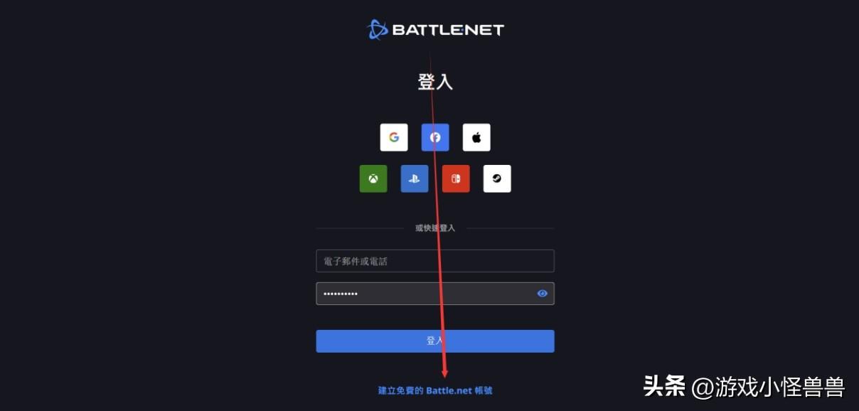 3、到达此处,玩家们便会发现已经找到了暴雪战网官网注册入口,点击创建免费的暴雪账号选项,来注册账号即可。