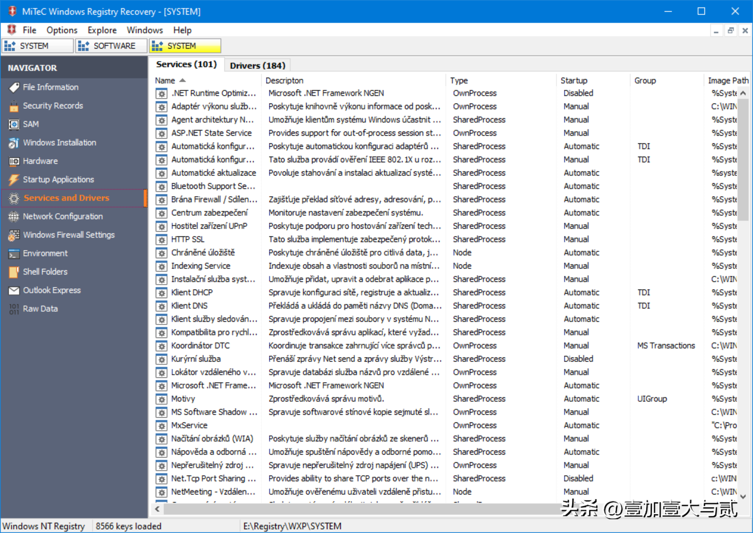 枚举所有已安装的服务和驱动程序及其属性。此资源管理器仅适用于基于NT的系统注册表SYSTEM hive。