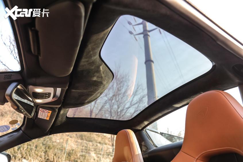 因为它是敞篷车,所以就没有可开启的天窗了。不过,迈凯伦别出心裁的为这辆车设计了一款可改变透光率的魔术天窗。