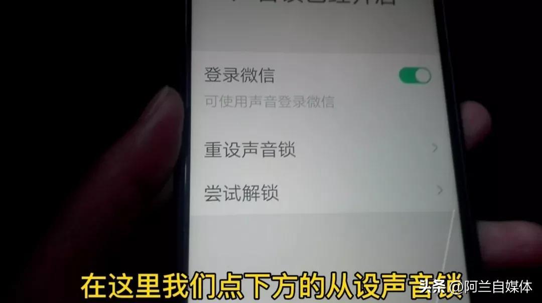 注意看下方有一个“声音锁”,我们把它点开,在登录微信后边有一个灰色的按钮,我们把它点一下就打开了声音锁。在这里我们点下方的“重设声音锁”!