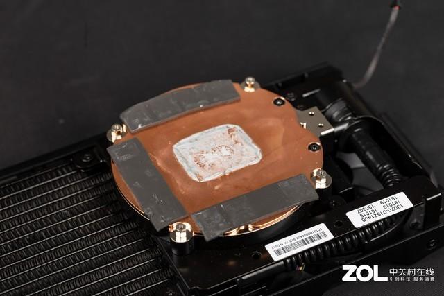 没错,ROG Matrix 2080 Ti采用了风水冷散热结合的设计,还是一体式水冷散热。这样做的好处当然是能够快速的导热,我们后期测试显卡的温度表现相当好。不过缺点也不是没有,那就是水泵噪音和厚度重量。