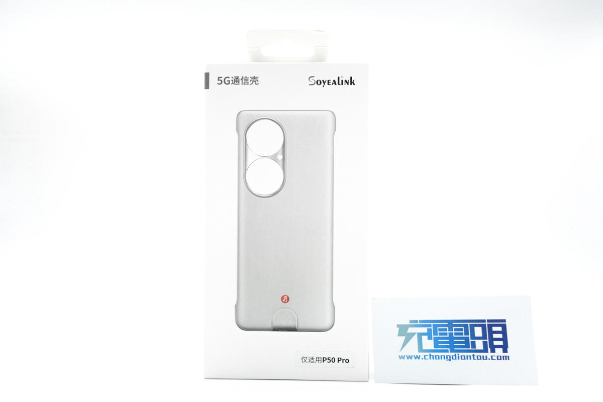 包装盒整体为白色纸盒设计,正面为通信壳外观图示;顶部分别为“5G通信壳”以及Soyealink品牌Logo字样;右下角的贴纸表明仅适用于华为 P50 Pro,其他型号华为用户或需再等待其他款式。