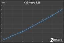 30分钟充电测试指:在手机电量为0的情况下,关闭所有后台应用进行30分钟充电,每5分钟记录一次电量。