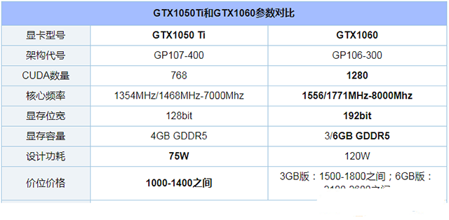 GTX1050 TI的CUDA数量与GTX 1060相差512,而CUDA核心数量决定了显卡的计算力的强弱(比如一项渲染任务可以拆分为更多份交由不同的CUDA核心进行处理)。简单来说,一项工作任务交给1050Ti有768个人工作,但交给1060则是1280个人在工作,自然效率大大提升。
