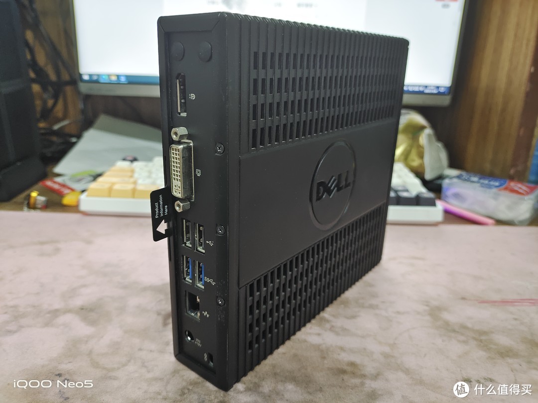 迫不及待地打开,终于看到我心仪已久的wyse5020真身了!前置两个USB2.0接口,1个3.5mm音频口,和电源开关。侧面是可以挂在显示器背面的VESA75mmx75mm标准孔。
