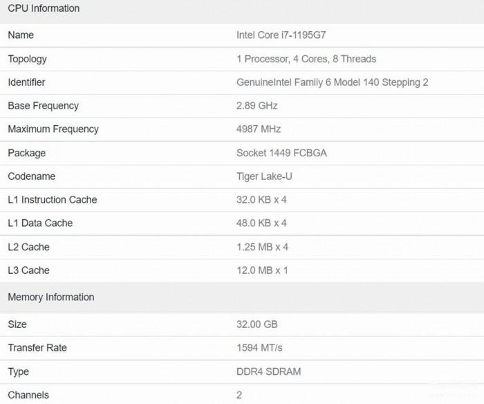 这一频率的实现要感谢英特尔 Max Turbo 3.0技术。虽然该CPU已经发布,并且已经在零售商的列表中看到,然而到目前为止,我们还没有看到任何第三方的基准测试。不过们现在,i7-1195G7 CPU 刚刚出现在 Geekbench 上,它显示了一些令人印象深刻的结果。