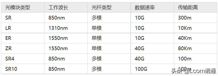 光模块有着多种不同的传输速率和传输距离,当我们针对光模块选择光纤的时候,要选择与之相匹配的光纤跳线,多源协议(MSA)详细规定了各种光模块的工作波长、传输距离和数据速率等,并列出了适合的光纤类型,这对光纤跳线的选择也具有一定的参考作用。下表是光模块的具体详情。