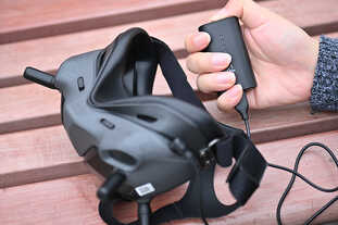 相信很多人会对这个设计感到奇怪,为什么电池不直接内置在飞行眼镜内呢,佩戴过VR头显的用户应该会有发言权,那些内置电池的头显设备的重量大都不轻,在VR应用方面头显重一点没有关系,但要用来航拍飞行感受设备的压迫感可就糟糕透了,而且内置电池做小了续航就不行,发热控制也不能得到有效保障,所以外置电池起码能在飞行眼镜的负重低,散热好以及续航高这三个方面拥有显著优势。因此大疆选择了这个设计,当然有得有失,这样设计的话那外出使用时就尽量穿着有口袋的衣服了。