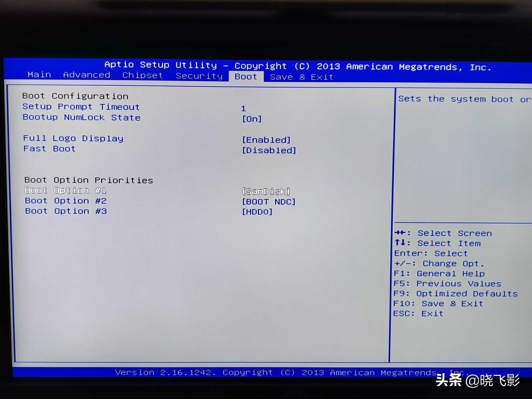 进 BIOS 的目的是设置 U 盘启动,进入 PE 系统,在 Boot 页面下,把 Boot Option #1改为 U 盘就行,刷机结束后记得改回 HDD0,或者干脆拔掉 U 盘也行,会自动找到 HDD0 硬盘启动。