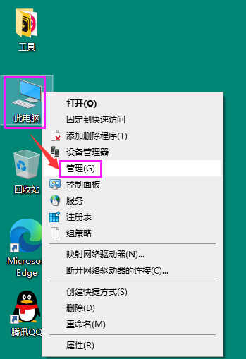 开启方法2:右击"此电脑" - 点击"管理"