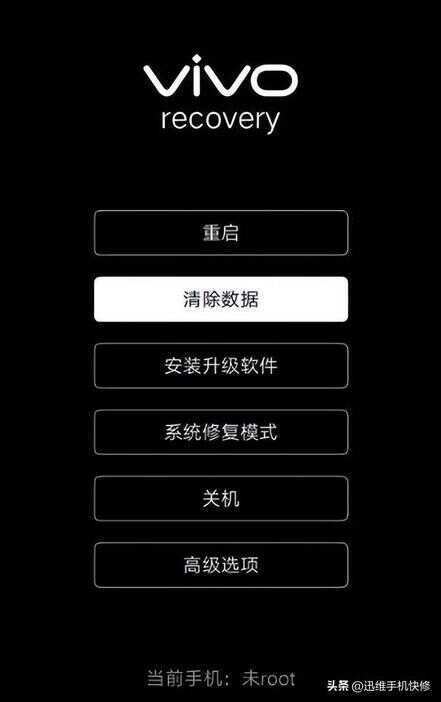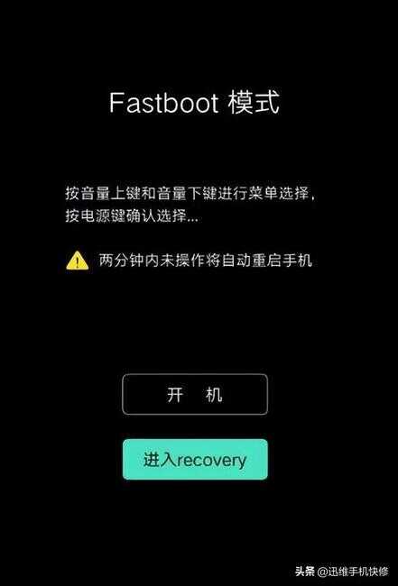 2.选择“进入recovery”。这里要提醒大家的是,recovery模式下屏幕是不可以操作的,但可以通过按音量的上下键移动光标,按电源键去确定选项。