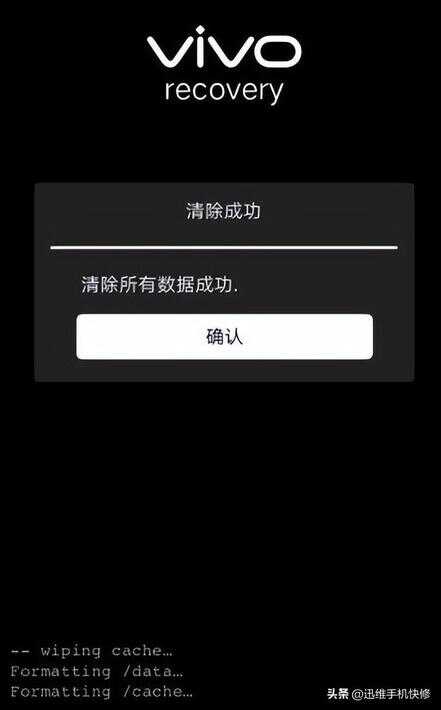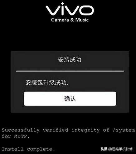 7.进度条读完后会提示安装成功,点击“确定”,手机跳转到“recovery”界面,最后重启手机就可以了。