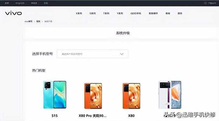 首先进入vivo官网,点击页面上方的“服务”—点击“系统升级”,选择对应的机型,下载对应的固件升级包,下载完成后,将固件升级包放到手机U盘或者SD卡根目录,也就是说不要把固件升级包放进任何文件夹里。
