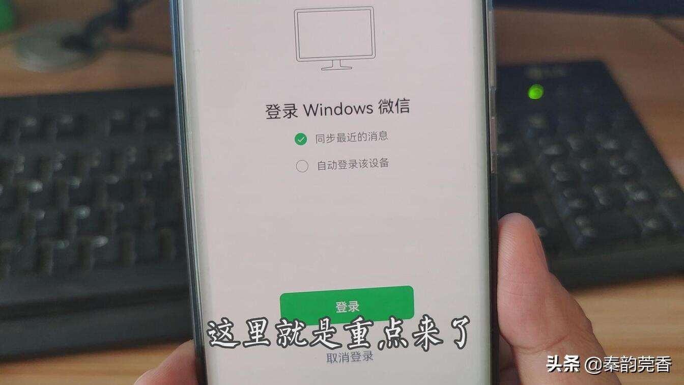 第二步:登录手机微信,二维码扫码电脑端微信。这里就是重点了,大家不要急着点击登录。手机界面我们看到默认的是同步最近的消息,这里我们需要选择一下,点击下面的选项:自动登录该设备。勾选好以后,选择确定登录。