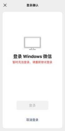 记者注意到,微信电脑版无法登录表现为,扫码登录后提示“暂时无法登录,请重新尝试登录”,疑似微信服务器故障。