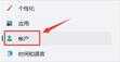 1、打开电脑后,按下键盘的win I键,找到并打开设置菜单中的账户页面。