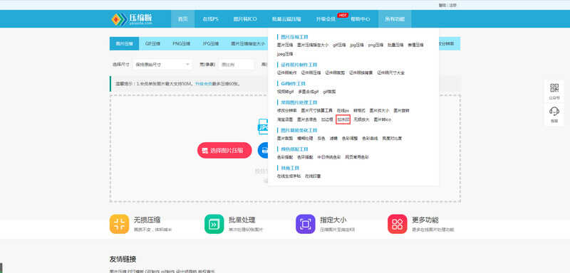 1、打开压缩啦网站,鼠标移入导航栏所有功能,点击加水印功能。