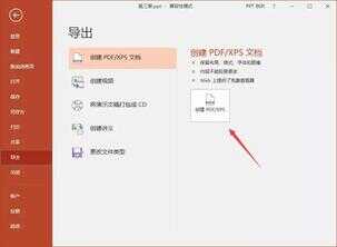 打开我们需要打印的 PPT ,点击【文件】-【导出】-选择【创建 PDF/XPS】,把 PPT 转成 PDF 格式。