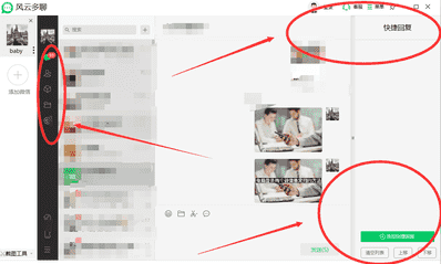 4、不管哪个微信来消息,通过添加快捷回复,回复对方就行,其他朋友圈,文件传输什么的,就跟正常微信实用是一样的。