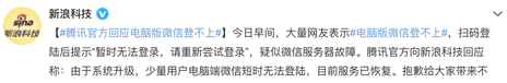 随后腾讯方面也对此事进行了回应,腾讯表示:由于系统升级,少量电脑端微信短时无法登录,目前服务已恢复。