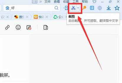 在我们浏览网页的时候,可以直接使用浏览器自带的截屏功能。我经常使用的浏览器是搜狗浏览器,它的工具栏里就有一个截屏按钮(如下图).