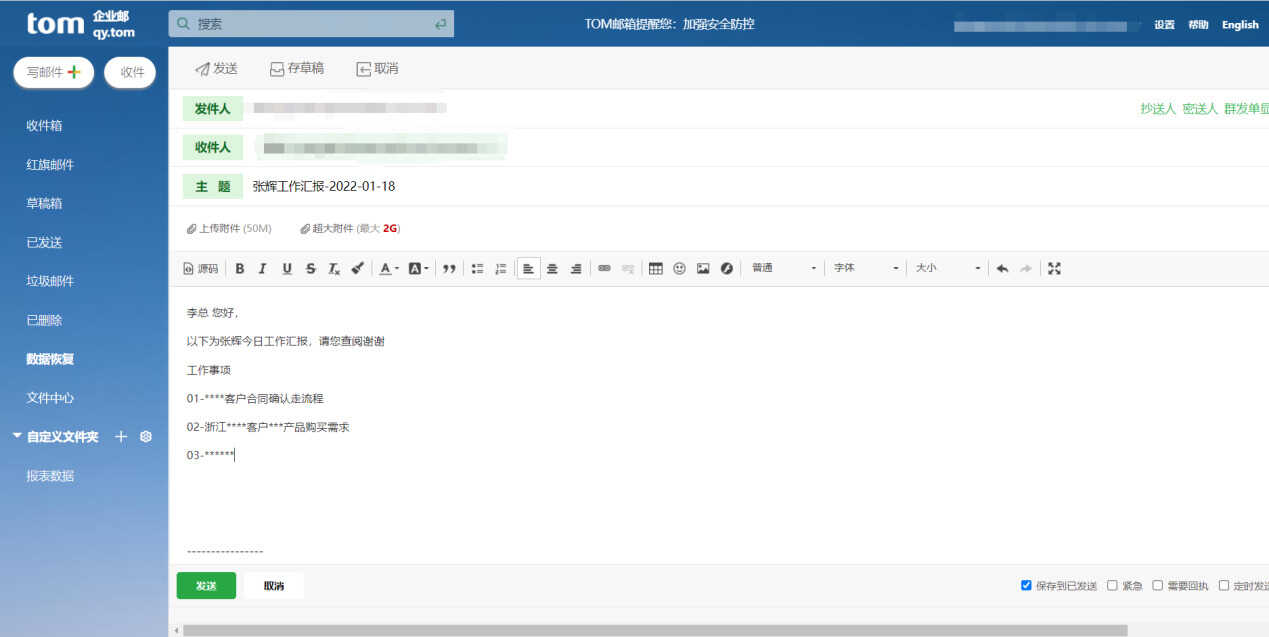 附件:发送的附件最好标记上序号,例如:附件01-*** 附件02-***,让收件人能够立马找到对应的附件进行查阅。