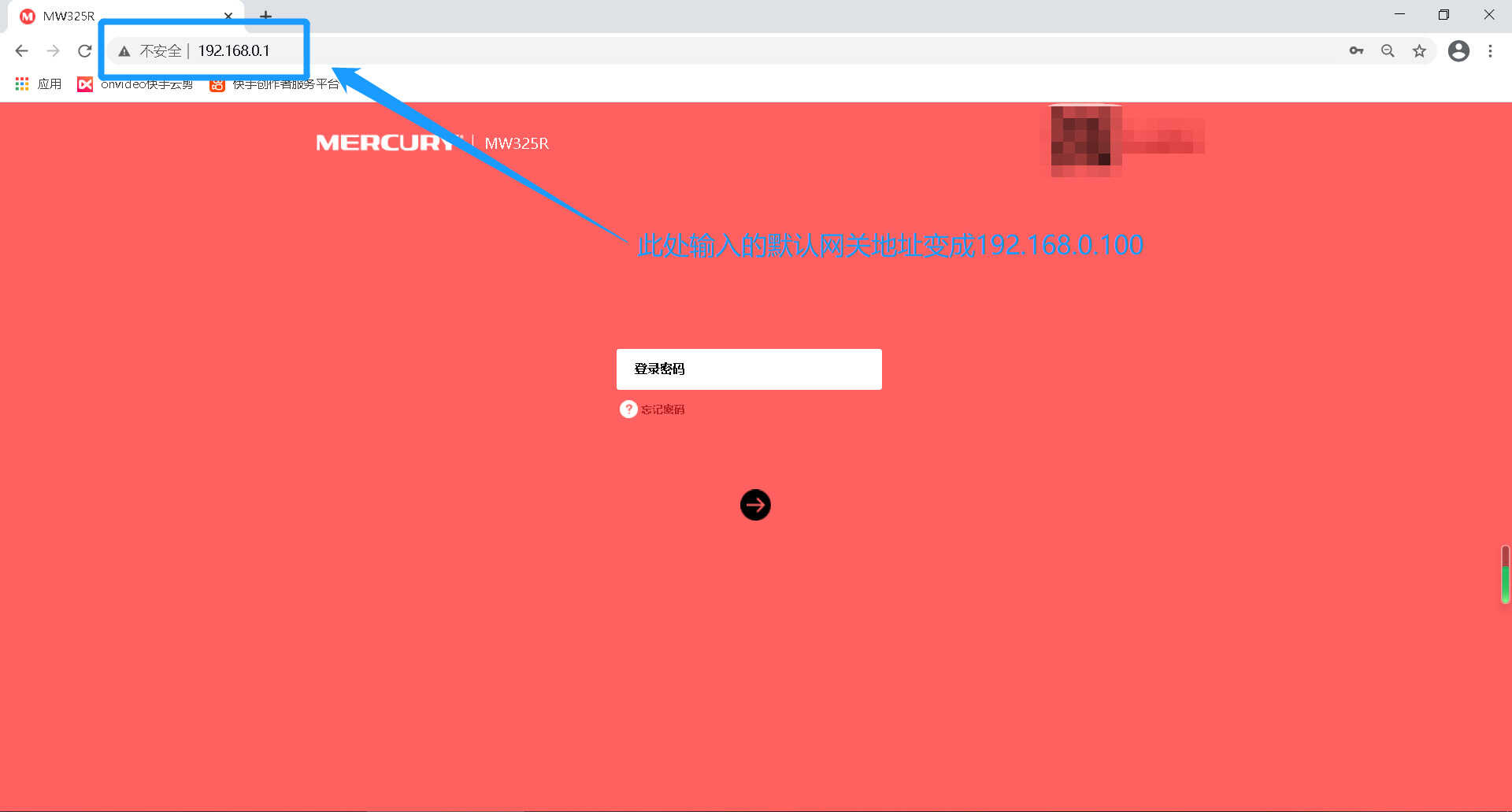 当我们找到这些讯息以后,就打开连接路由器的设备,个人建议使用电脑,然后随意打开一款浏览器,在浏览器内输入默认网关地址。如下图: