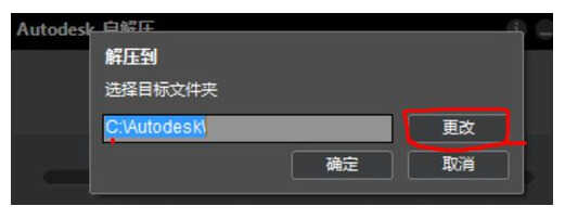 3、在弹出来的对话框中,选择你要解压缩到的文件夹,默认的文件夹为 C:\Autodesk\,这里可以解压到自己习惯的盘里面或者直接把C盘改成D盘,这是解压文件,安装之后可以删除。