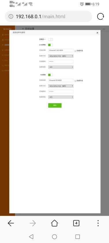 点击无线设置,可以分别设置ChinaNet-2.4G和ChinaNet-5G的无线密码,到时会搜到两个wifi都可以上网,可以自己选择一个连接,设置完后记得点保存