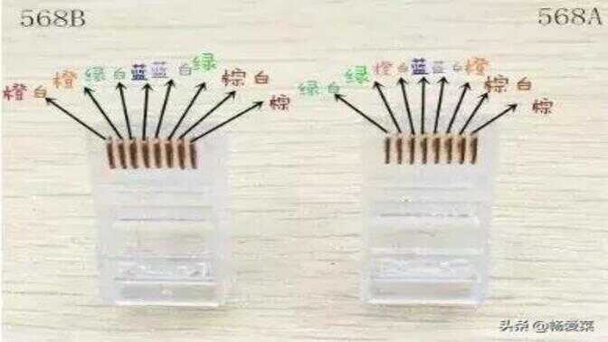 排线顺序有两个标准,分别叫做T568A和T568B——两种排法没有本质上的区别,但是在选择时有规定……敲黑板,这里很重要: