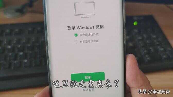 第二步:登录手机微信,二维码扫码电脑端微信。这里就是重点了,大家不要急着点击登录。手机界面我们看到默认的是同步最近的消息,这里我们需要选择一下,点击下面的选项:自动登录该设备。勾选好以后,选择确定登录。