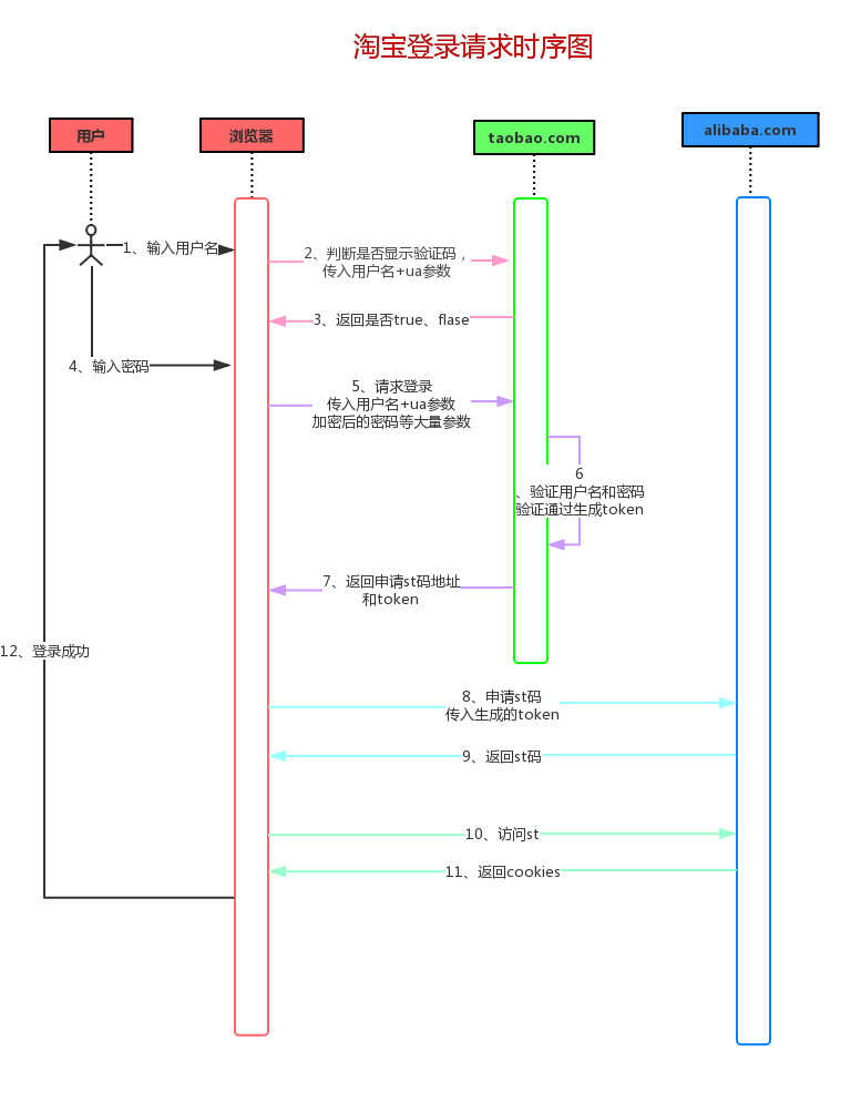 我们先来回顾一下模拟登录淘宝的步骤吧,我们还是先看看淘宝登录的详细时序图:
