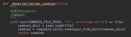 读取cookies就是将文件转转化为cookies对象,这一步叫反序列化,直接上代码: