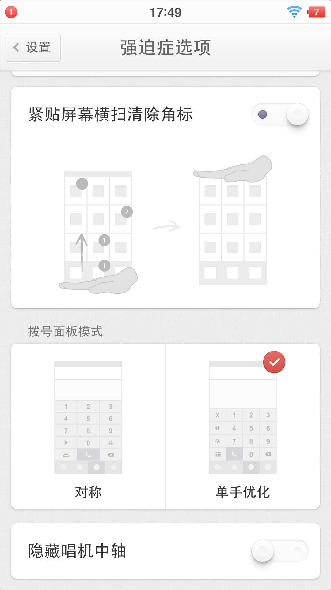 系统也是强迫症的福音,系统可以隐藏应用图标名称,也可以一键关闭角标。甚至你可以用手掌从屏幕的顶部滑下来就可以手动清除角标。对于强迫症来说,这种感觉哪个酸爽。