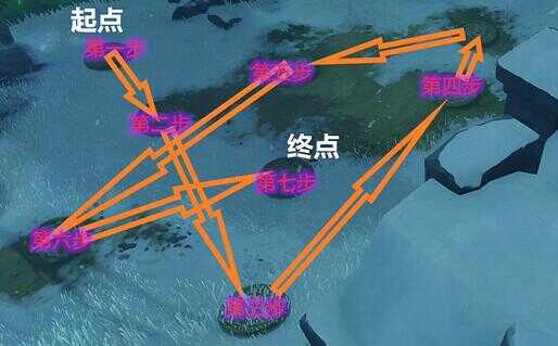 第一步到第七步的详细解法!首先我们要来到雪山最左边靠近地中之盐的传送点(是雪山的传送锚点,不是地中之盐的),传送点上方就是这个机关的位置。从传送点出来之后,顺着路向左走就能看见这七个井盖机关了。而这七个井盖机关的详细步骤解法,就在下面的这张图中了。玩家过来的地方,是第六步与第三步的方向。因此首先要调整自己的站位,确定井盖的起点位置第一步不能走错。如果不能确定的话,就爬到高处看形状。这个还是很好定位的,周围有墙又有树。