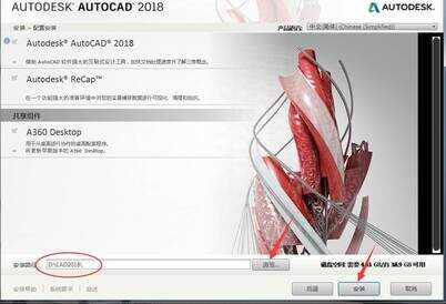 6.点击浏览更改软件安装路径:建议安装到除C盘以外的磁盘,可选择之前在D盘或其它盘里面新建的那个文件夹CAD2018。然后点击安装。