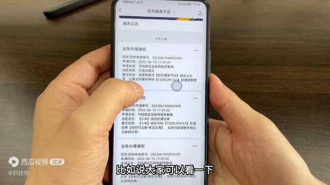 我们可以看一下接近一分钟左右就会收到一个通知,业务办理通知,比如说大家可以看一下这显示号码已经提交,然后的话比如说像这个小米账号已经完全注销掉了,我们可以重新注册重新绑定,像淘宝账户也可以直接重新注册重新绑定,这样的话基本就完成了。