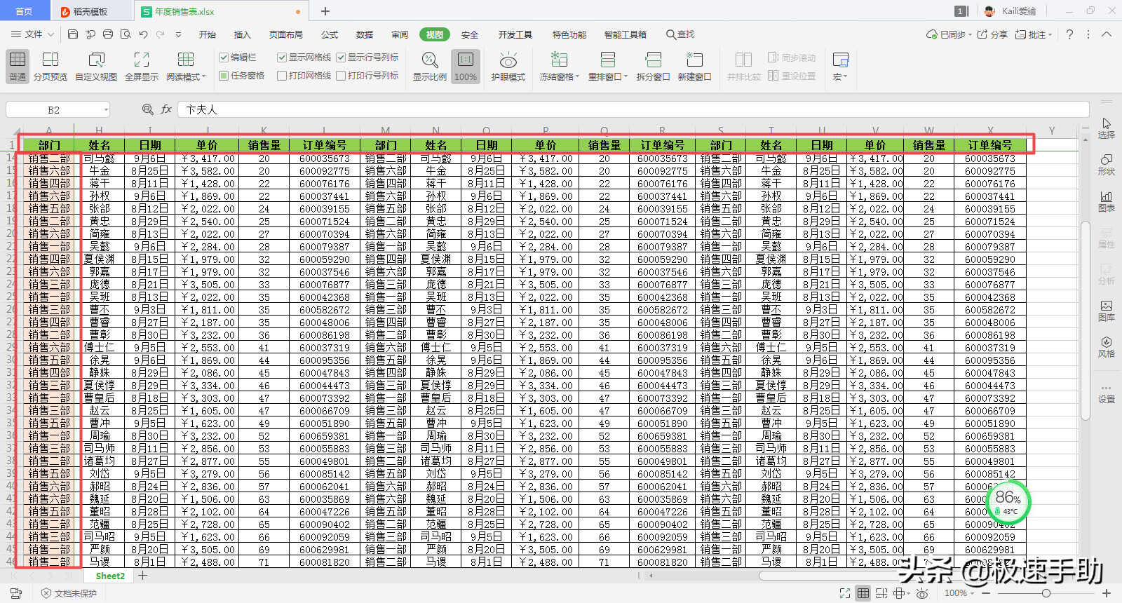 如果我们表格有很多列,那么此时我们在查看表格的时候,如果想要直接查看表格的最后一列,有或者是想要从查看的单元格位置回到第一列的话,那么此时我们该怎么办呢?其实方法很简单,我们只需要通过双击单元格左右的边线就可以来快速搞定了。