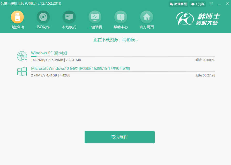 韩博士开始自动为我们下载win10系统文件,整个过程只需要大家美滋滋等待下载完成即可。但是等待的时间会比较长,所以大家可以离开一段时间稍作休息。