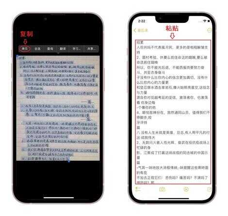 你也可以将纸上文字拍下来,保存到相册中,长按图片上的文字,即可快速选中,支持复制、翻译、转发等操作。这个功能没有网络也能使用,简直就是办公神器!