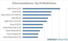 近日知名行业分析机构Strategy Analytics公布了2022年第一季度中国智能手机市场畅销榜前十的名单。iPhone 13不出意外地位居了榜首,下面带大家看看还有哪些机型上榜了吧。