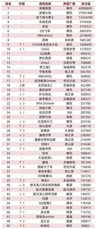 排行榜上的游戏还有90后们非常熟悉的:飞车,CSGO,炫舞(女玩家们的最爱),梦幻西游,劲舞团,跑跑卡丁车,问道。