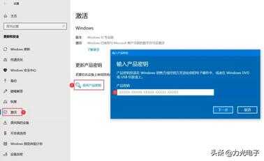 4、点击【开始-设置-更新和安全-系统激活页面-更改密钥】,粘贴输入密钥后即可重新激活;