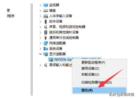 2.要是没有安装独立显卡驱动将显示淡黄色感叹号,右键独立显卡名字,选择属性。