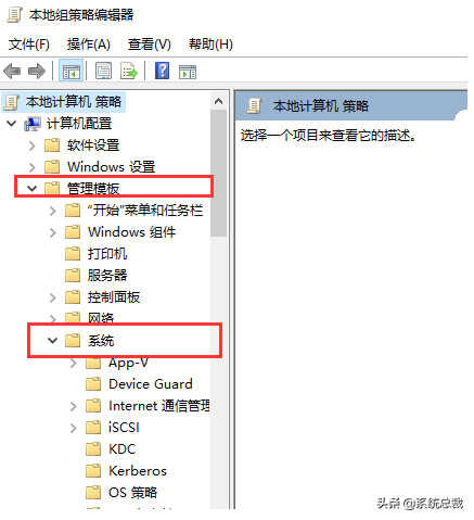2.打开组策略编辑器,先后进行计算机配备>>管理模版>>系统。